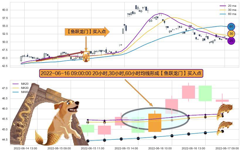 ⚀ 2022-06-16 09:00:00小时显现 20小时-30小时-60小时均线 【鱼跃龙门】买入点 看多信号,后市看涨,买入