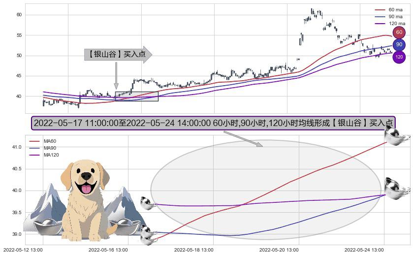 ⚀ 2022-05-17 13:00:00-小时至2022-05-24 14:00:00-小时显现 60小时-90小时-120小时均线 【银山谷】买入点 看多信号,后市看涨,买入