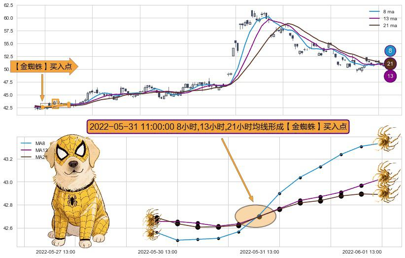 ⚀ 2022-05-31 11:00:00小时显现 8小时-13小时-21小时均线 【金蜘蛛】买入点 看多信号,后市看涨,买入
