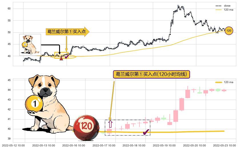 ⚀ 2022-05-17 09:00:00-小时显现 葛兰威尔均线 120小时均线 第买①入点 走势反转见底信号,后市看涨,买进信号