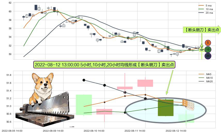 ⚀ 2022-08-12 13:00:00小时显现 5小时-10小时-20小时均线 【断头铡刀】卖出点 看空信号,后市看跌,卖出