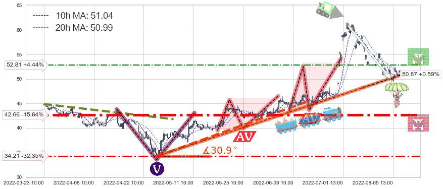 ♘ 阻力价格位52.81,可信任强度44.72%,距离最后交易2022-08-12 14:00形成的收盘价格50.57相差 +4.44%