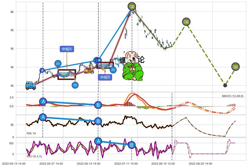 | 2 🅚:下跌两颗星 | 下跌三颗星 ➕ 🌊:波浪理论猜想上涨浪5已形成,猜想后续形成回调abc下跌(均值回复) ☞ 看空信号 ⇥ 【🅚线】交织【图形】⇥ 综合量化分数: 49 | > |