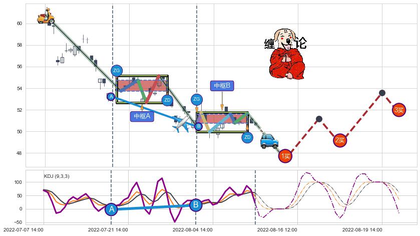 ➣ 【未完成】缠论 起点:07-07:14, 完成第1中枢A,完成第2中枢B,到达08-12:14