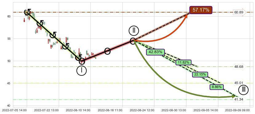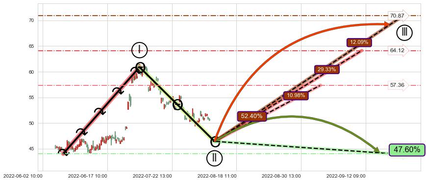 2022-06-14: 第一支撑位44.04有效抑制了下跌浪,成功阻止了价格的继续下跌。