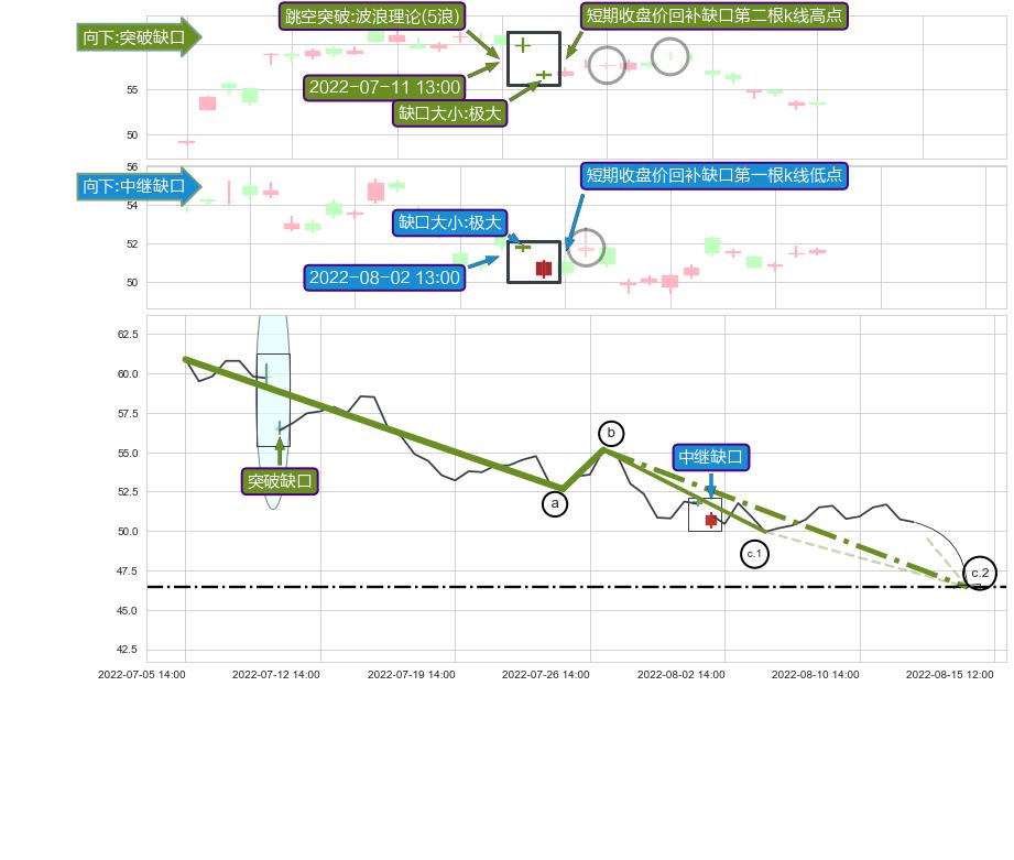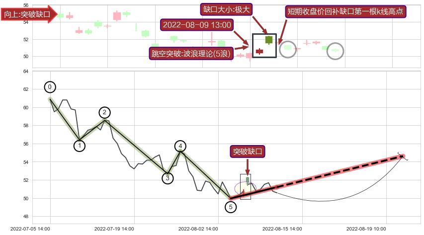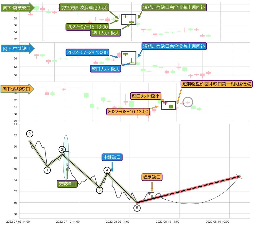 ➢ 2022-08-10 13:00形成:向下跳空【竭尽】缺口