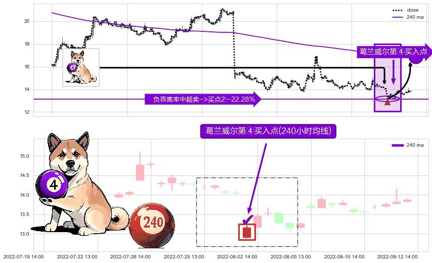 ⚀ 2022-08-02 13:00:00-小时显现 葛兰威尔均线 240小时均线 第④买入点 下降趋势均值回复的短线反弹信号,后市看涨,买进信号