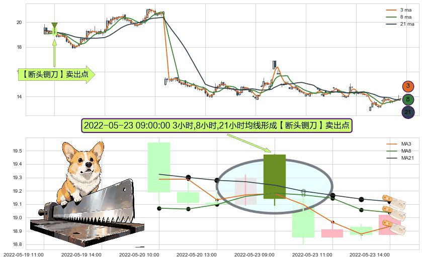 ⚀ 2022-05-23 09:00:00小时显现 3小时-8小时-21小时均线 【断头铡刀】卖出点 看空信号,后市看跌,卖出