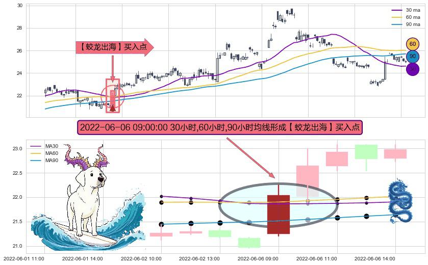 形态多维评估: ⚀ 2022-06-06 09:00:00小时显现 30小时-60小时-90小时均线 【蛟龙出海】买入点 看多信号,后市看涨,买入