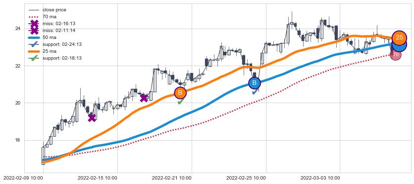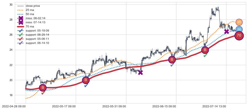 上涨趋势04-28 09:00-07-20 14:00,均线70确认关键支撑4处
