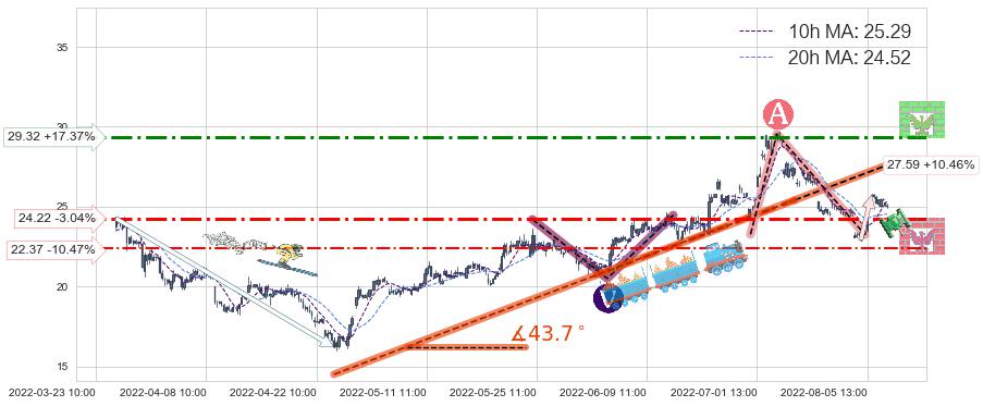 ♘ 阻力价格位29.32,可信任强度55.79%,距离最后交易2022-08-12 14:00形成的收盘价格24.98相差 +17.37%