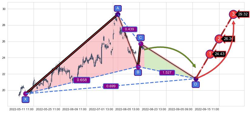 ➣ D点拟合预测价格21.41,距离最后交易收盘价格24.98相差 -14.28%