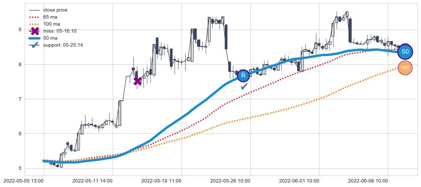 上涨趋势05-05 13:00-06-08 14:00,均线50确认关键支撑1处