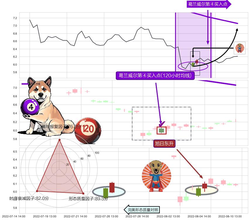 | 4 🅚:上涨身怀六甲 ➕ 🎢:葛兰威尔第④买入点买入点信号形成后,猜想后续走势持续反弹上升(均值回复) ☞ 看多信号 ⇥ 【均线】交织【🅚线】⇥ 综合量化分数: 56 | > |