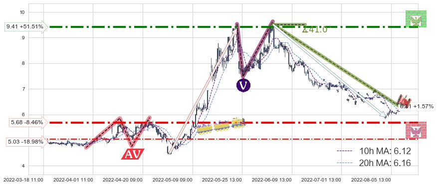 ♞ 10小时均线:6.12,20小时均线:6.16→ 快线<慢线