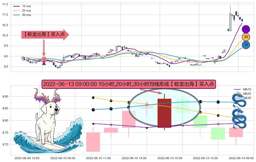 ⚀ 2022-06-13 09:00:00小时显现 10小时-20小时-30小时均线 【蛟龙出海】买入点 看多信号,后市看涨,买入