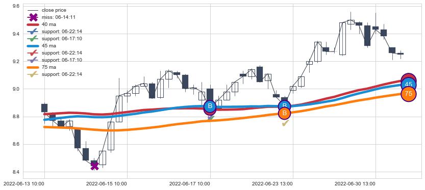 ⚂ 2022-06-13 09:00:00小时突然冒出一根大阳线,一下子顶穿三条均线且收盘价收在各条均线之上