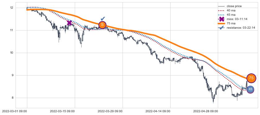 ⚂ 2022-07-12 13:00:00-小时均线向下破位,2022-08-04 13:00:00-小时重新上穿突破均线,均线支撑再次生效