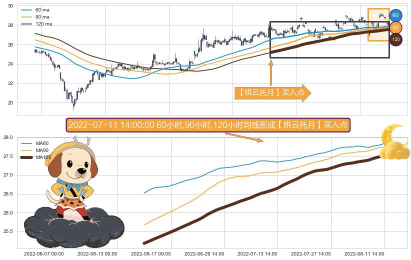 形态多维评估: ⚀ 2022-06-15 09:00:00小时-2022-08-12 14:00:00小时显现 60小时-90小时-120小时均线 【烘云托月】买入点 看多信号,后市看涨,买入