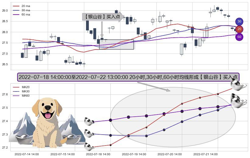 形态多维评估: ⚀ 2022-07-19 13:00:00-小时至2022-07-22 13:00:00-小时显现 20小时-30小时-60小时均线 【银山谷】买入点 看多信号,后市看涨,买入