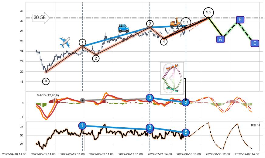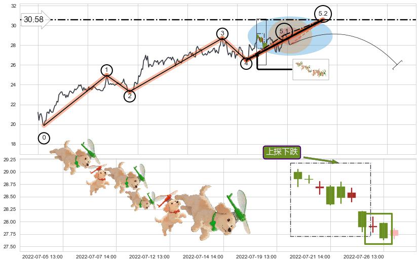 ➢ 5.2: 预测第5浪最终位置(08-22:11, 30.58)