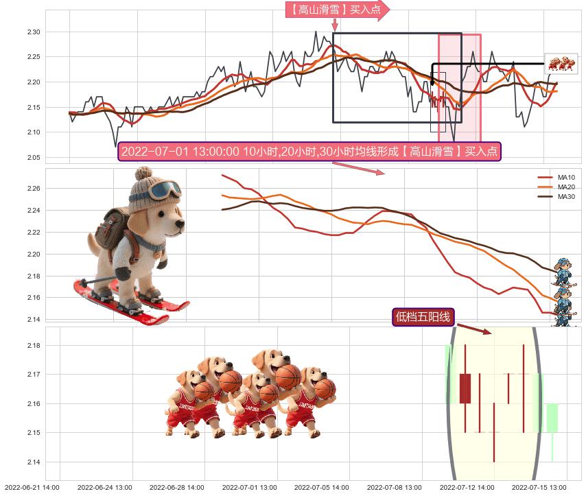 | 2 🅚:旭日东升 ➕ 🎢:【高山滑雪】买入点均线组合买入点信号形成后,猜想后续下行结束,持续反弹上涨(均值回复) ☞ 看多信号 ⇥ 【均线】交织【🅚线】⇥ 综合量化分数: 54 | > |