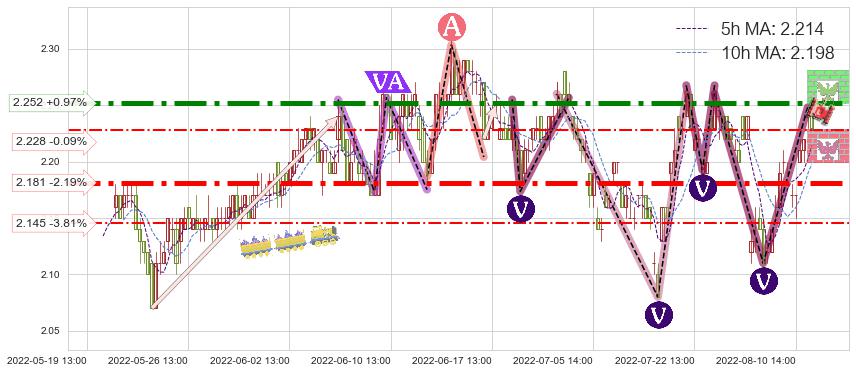 ♘ 阻力价格位2.252,可信任强度97.54%,距离最后交易2022-08-12 14:00形成的收盘价格2.230相差 +0.97%