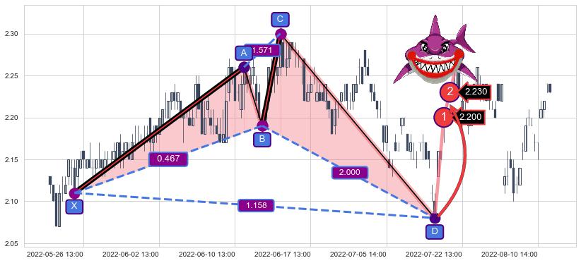 ➣ 已完成【鲨鱼】形态起点X: 05-26:09, 终点D: 07-15:14, 共120交易小时