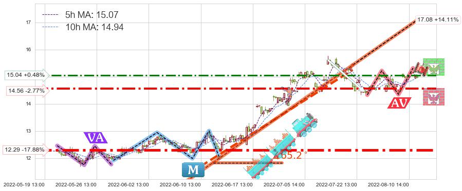 ♘ 阻力价格位15.04,可信任强度68.77%,距离最后交易2022-08-12 14:00形成的收盘价格14.97相差 +0.48%