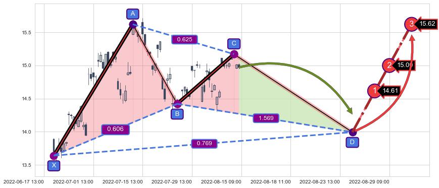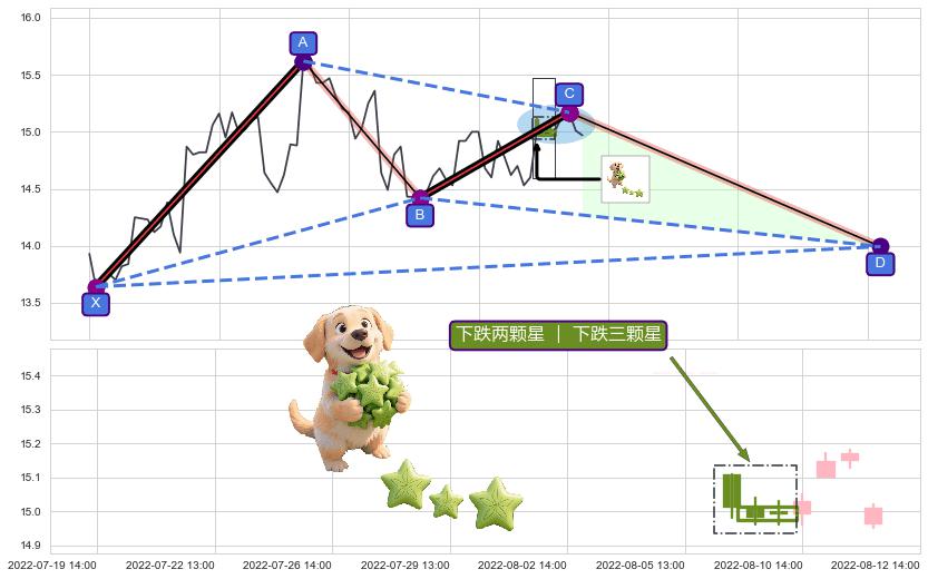 ➣ D点拟合预测价格13.99,距离最后交易收盘价格14.97相差 -6.53%