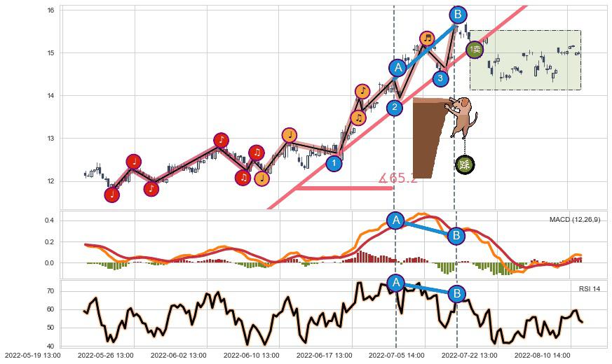 从2022-07-26 13:00至2022-08-12 14:00,共包含26个小时,阶段股价上涨3.91%,阶段股价变动位移路程比: 1 : 5