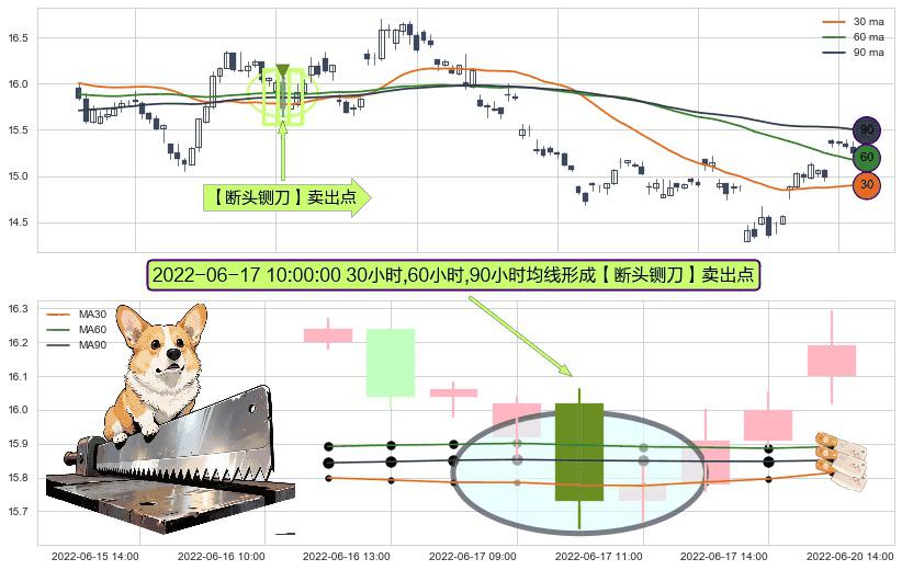 ⚀ 2022-06-17 10:00:00小时显现 30小时-60小时-90小时均线 【断头铡刀】卖出点 看空信号,后市看跌,卖出