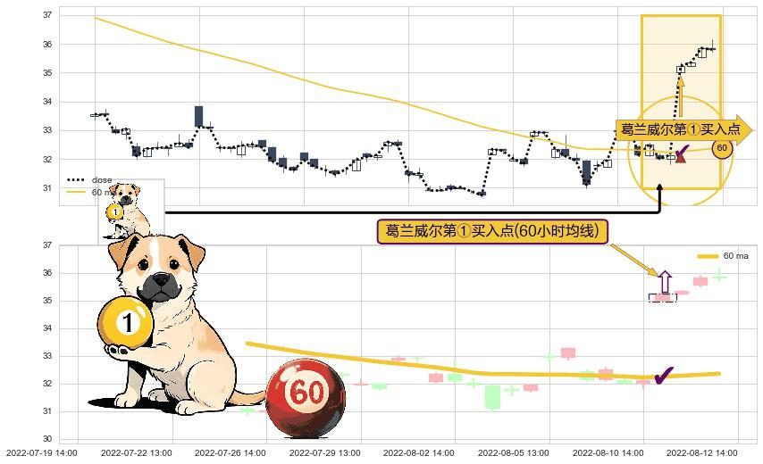 ⚀ 2022-08-11 13:00:00-小时显现 葛兰威尔均线 60小时均线 第买①入点 走势反转见底信号,后市看涨,买进信号