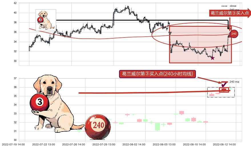 ⚀ 2022-08-12 13:00:00-小时显现 葛兰威尔均线 240小时均线 第③买入点 上升趋势的中继信号,后市看涨,买进信号