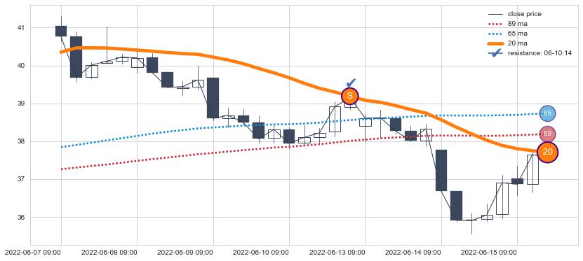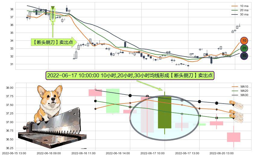 ⚀ 2022-06-17 10:00:00小时显现 10小时-20小时-30小时均线 【断头铡刀】卖出点 看空信号,后市看跌,卖出