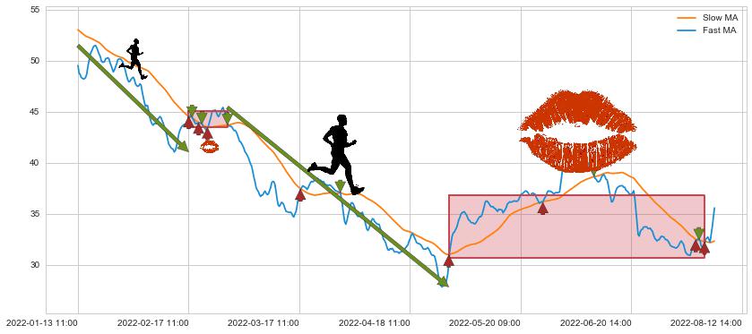 02-28 11:00至04-28 09:00 慢线与快线呈空头排列, 慢线与快线接触少,无缠绕