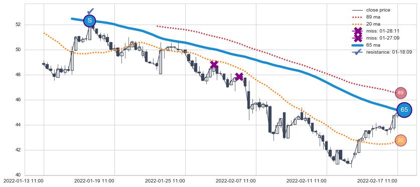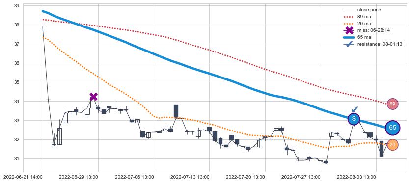 ⚂ 2022-06-22 13:00:00-小时均线向下破位,2022-08-12 13:00:00-小时重新上穿突破均线,均线支撑再次生效