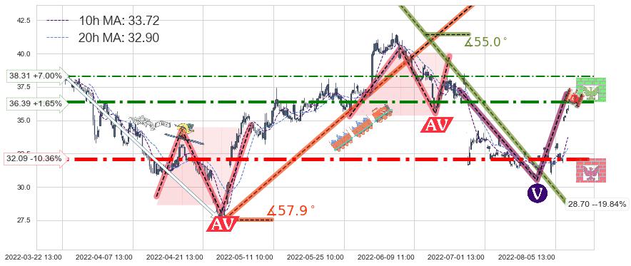 ♘ 阻力价格位36.39,可信任强度77.13%,距离最后交易2022-08-12 14:00形成的收盘价格35.80相差 +1.65%