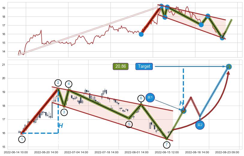 ➣ 最小中继整理涨幅→𝐇: 3.240 (𝐇旗杆的长度:旗杆起点→顶点)