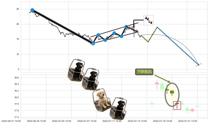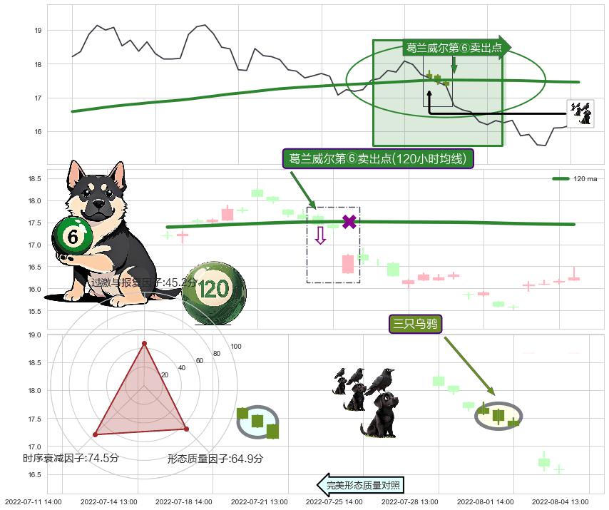 | 3 🅚:三只乌鸦 ➕ 📐:升旗形下行突破支撑位破位, 猜想持续下沉下跌,被突破的支撑位已变为阻力位 ☞ 看空信号 ⇥ 【🅚线】交织【图形】⇥ 综合量化分数: 40 | > |