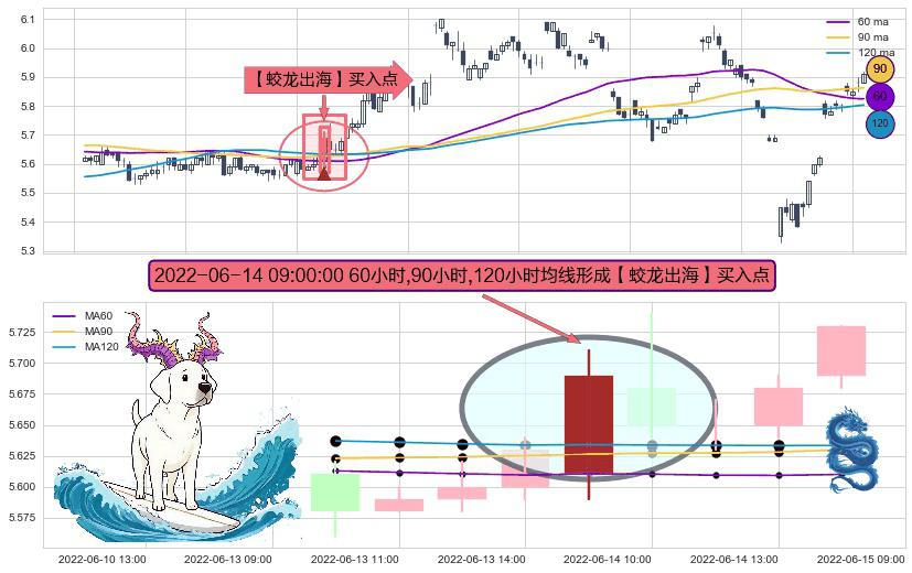 ⚀ 2022-06-14 09:00:00小时显现 60小时-90小时-120小时均线 【蛟龙出海】买入点 看多信号,后市看涨,买入