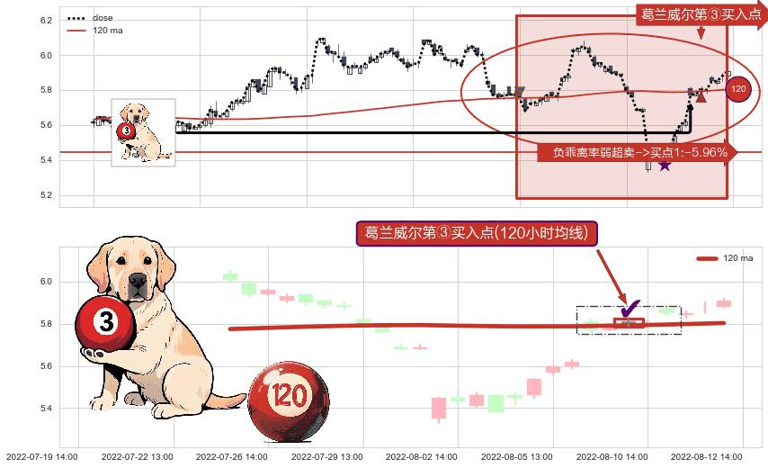 ⚀ 2022-08-10 13:00:00-小时显现 葛兰威尔均线 120小时均线 第③买入点 上升趋势的中继信号,后市看涨,买进信号