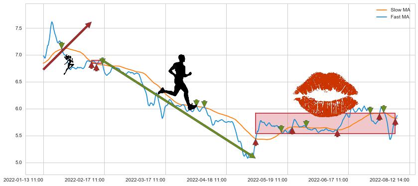 02-16 14:00至05-05 09:00 慢线与快线呈空头排列, 慢线与快线接触少,无缠绕