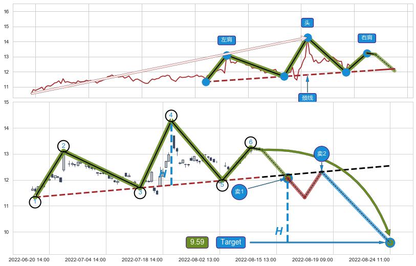 ➣ 最小反转跌幅→𝐇: 2.474 (头部与颈线垂直距离)