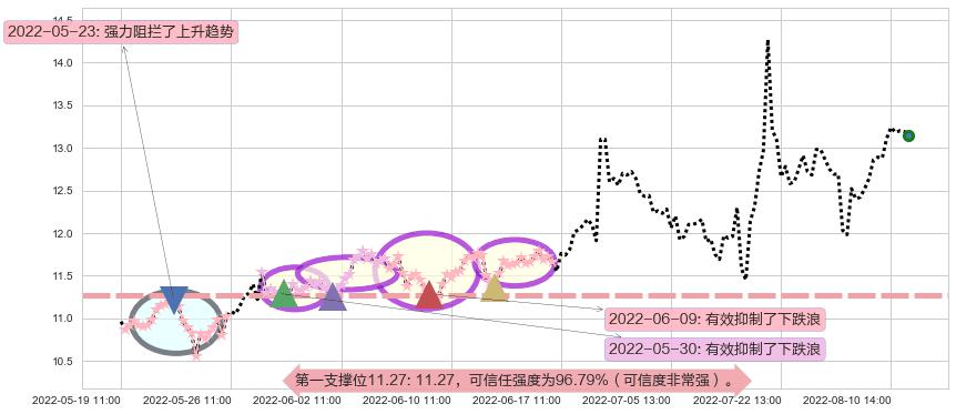 2022-05-23: 第一支撑位11.27强力阻拦了上升趋势,成功阻止了价格的继续上涨。