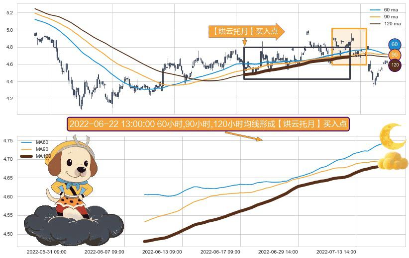 ⚀ 2022-06-08 11:00:00小时-2022-07-21 13:00:00小时显现 60小时-90小时-120小时均线 【烘云托月】买入点 看多信号,后市看涨,买入