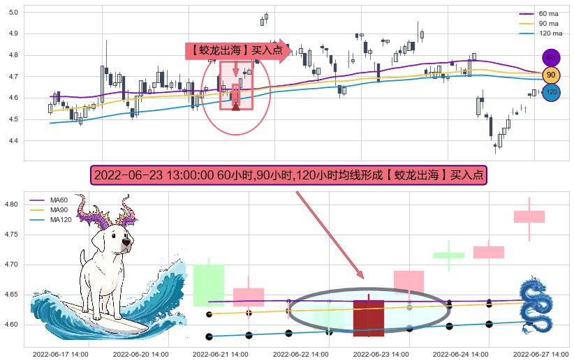 ⚀ 2022-06-23 13:00:00小时显现 60小时-90小时-120小时均线 【蛟龙出海】买入点 看多信号,后市看涨,买入