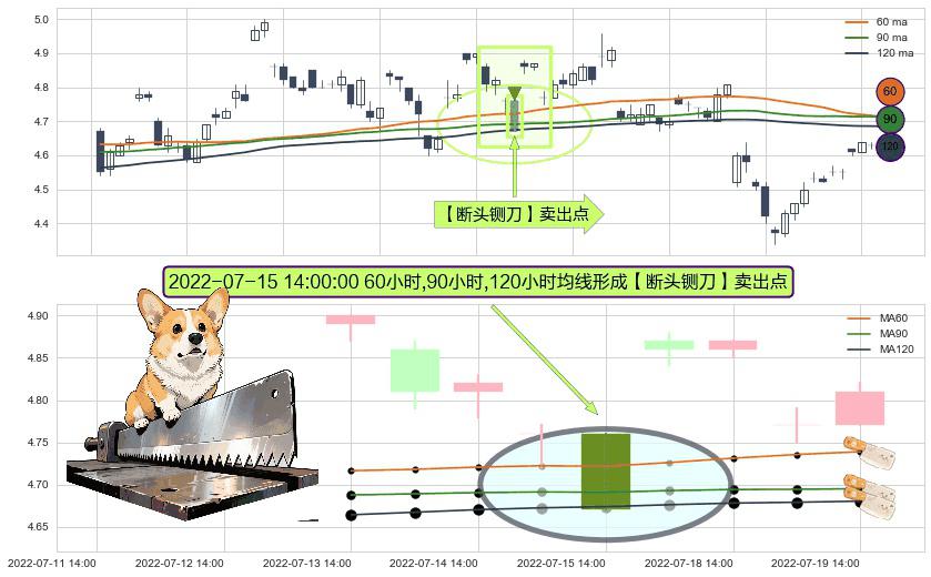 ⚀ 2022-07-15 14:00:00小时显现 60小时-90小时-120小时均线 【断头铡刀】卖出点 看空信号,后市看跌,卖出