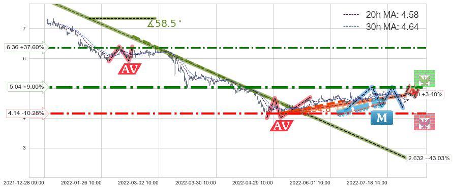 ♞ 20小时均线:4.58,30小时均线:4.64→ 快线<慢线