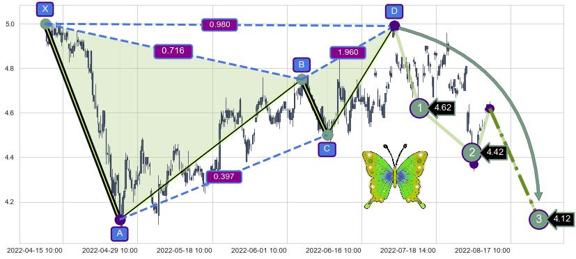 ➣ 已完成【蝴蝶】形态起点X: 04-12:14, 终点D: 06-28:14, 共235交易小时